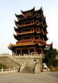 黄鹤楼巍峨耸立于湖北省武昌蛇山之顶,历史悠久,景色壮观,享有“千古名胜,天下绝景”和“天下江山第一楼”的盛誉,因传说有仙吕洞宾屡乘黄鹤由此地得名,黄鹤楼与湖南岳阳楼、江西滕王阁并称为“江南三大名楼”。