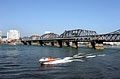 ¡¡¡¡ÉÏÇÅ¡ª¡ªµÚ¶þ×ùÇÅÒ²¾ÍÊÇÎÒÃǾ­³£ËµµÄѼÂ̽­´óÇÅ»¹ÔÚʹÓÃÖУ¬ÊÇÁªÏµÖг¯Á½¹úµÄŦ´ø£¬´óÇÅÈ«³¤946.2Ã×£¬ÆäÖÐÖз½Çų¤569.9Ãס£Ñ¼Â̽­´óÇÅÊÇ1937Ä꣨Ãñ¹ú¶þÊ®ÁùÄ꣩4ÔÂÈÕ±¾ÇÖÂÔÕßÐÞ½¨°²·î¸´ÏßÌú·ʱ£¬Óɵ±Ê±µÄÈÕ±¾Æû³µÖêʽ»áÉçºÍÈÕ±¾½¨ÉèÖêʽ»áÉçÁªºÏÔÚÏÂÇŵÄÉÏÓÎ100Ã×´¦°´300ÄêÆµÂÊÉè¼ÆÐÞ½¨µÄ£¬ÓÚ1943Äê4ÔÂͨ³µ¡£Çų¤946Ã×£¬¹²12¿×¡£³¯·½6¿×ÊÇÆ½ÏÒÁ¬ÐøÇÅÁº£¬Öз½6¿×ΪµõÏÒÁ¬ÐøÇÅÁºÊ½¸´ÏßÌú·ÇÅ£¬¿ÉͬʱÐÐÊ»ÉÏÏÂÐÐÒ»¶ÔÁгµ¡£´óÇÅͨ³µºó£¬³ÉΪÈÕ±¾ÇÖÂÔÕß´óËÁÂÓ¶áÖйú×ÊÔ´µÄÖ÷ҪͨµÀ¡£¿¹Õ½Ê¤Àûºó£¬´óÇÅÓɵ±Ê±µÄËÕÁªºì¾ü½Ó¹Ü¡£1947Äê6Ô£¬ËÕ¾ü³·À볯ÏÊʱ£¬½«½­ÇÅ·Ö±ðÒÆ½»¸øÖг¯Á½¹úÕþ¸®¹²Í¬¹ÜÀí¡£1951Äê1ÔÂÉÏÇŰѸ´ÏßÌú·²ðÈ¥Ò»¹É¸Ä³É¹«Â·£¬±ä³ÉÌú·¡¢¹«Â·Á½ÓÃÇÅ¡£µ±Ê±¹«Â·ÇÅÃæÆÌÉèľ°å£¬1977Äê»»ÆÌË®Äà°å¡£
